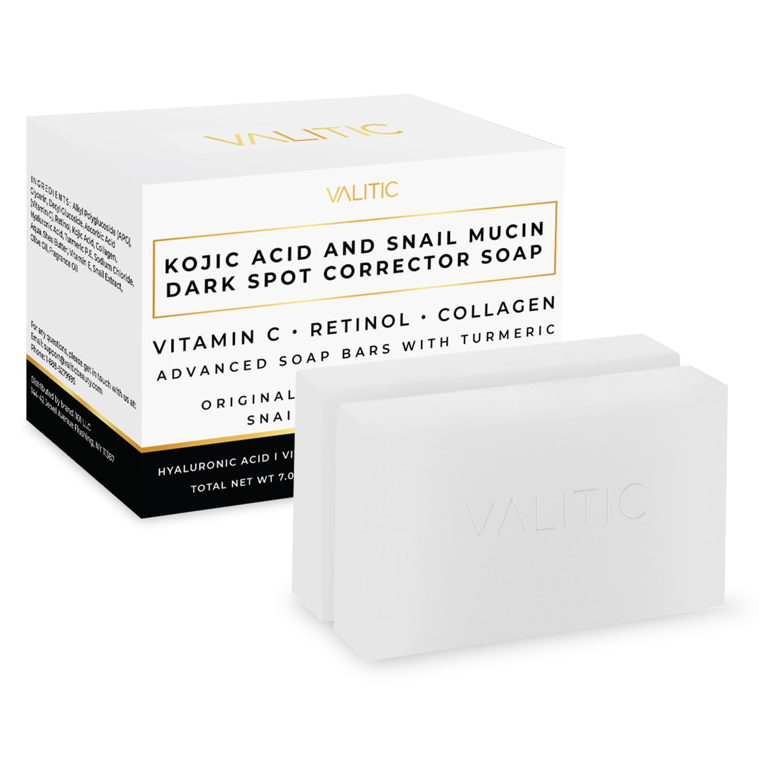 VALITIC Snail Mucin Cleanser Soap Bar with Turmeric and Kojic Acid Dark Spot Corrector – Anti Aging and Purifying Skin Care Snail Secretion for Intense Hydration and Moisturization – 2 Pack
